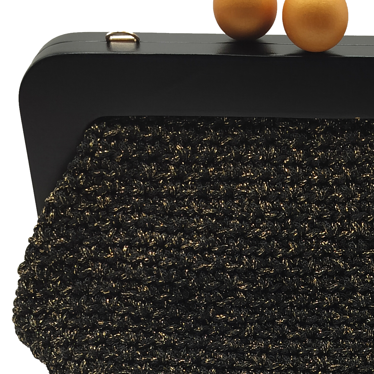 Αναδείξτε το στυλ σας με αυτό το μοναδικό χειροποίητο πλεκτό clutch, ιδανικό για βραδινές εμφανίσεις και ιδιαίτερες περιστάσεις. Το τσαντάκι είναι φτιαγμένο από υψηλής ποιότητας νήμα με μεταλλική χρυσή κλωστή που χαρίζει διακριτική λάμψη.