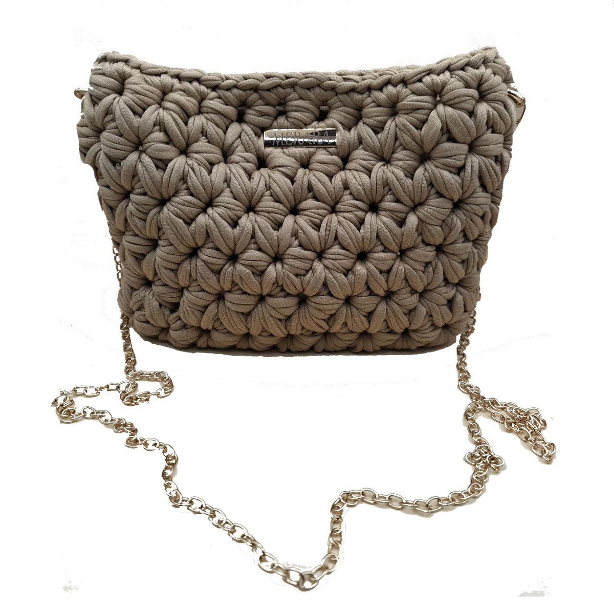 Beige Allure Χειροποίητη Πλεκτή Τσάντα με Αλυσίδα
