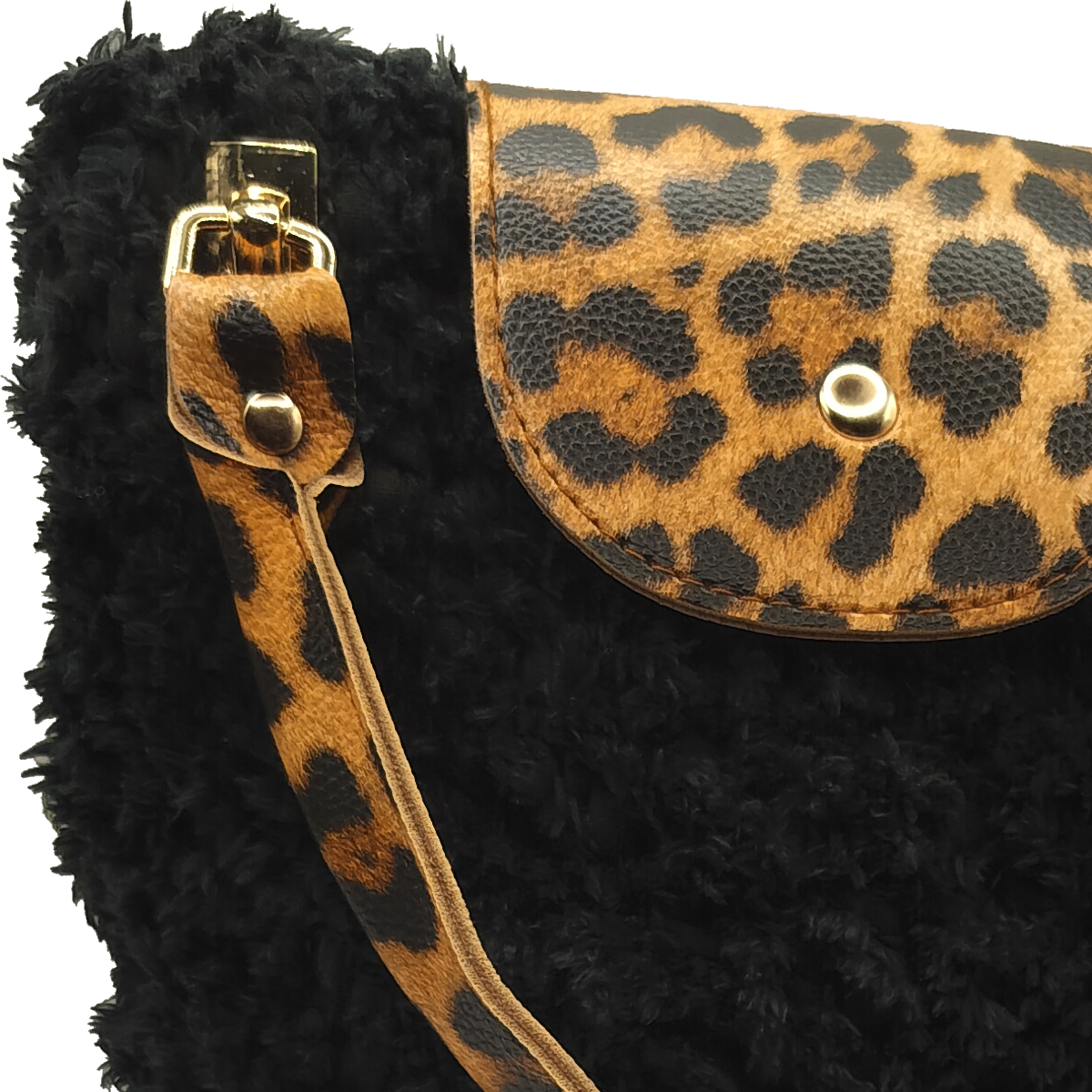 Leopard Noir Χειροποίητη Πλεκτή Τσάντα Χειρός από Νήμα Προβατάκι με Λεοπάρ Κιτ
